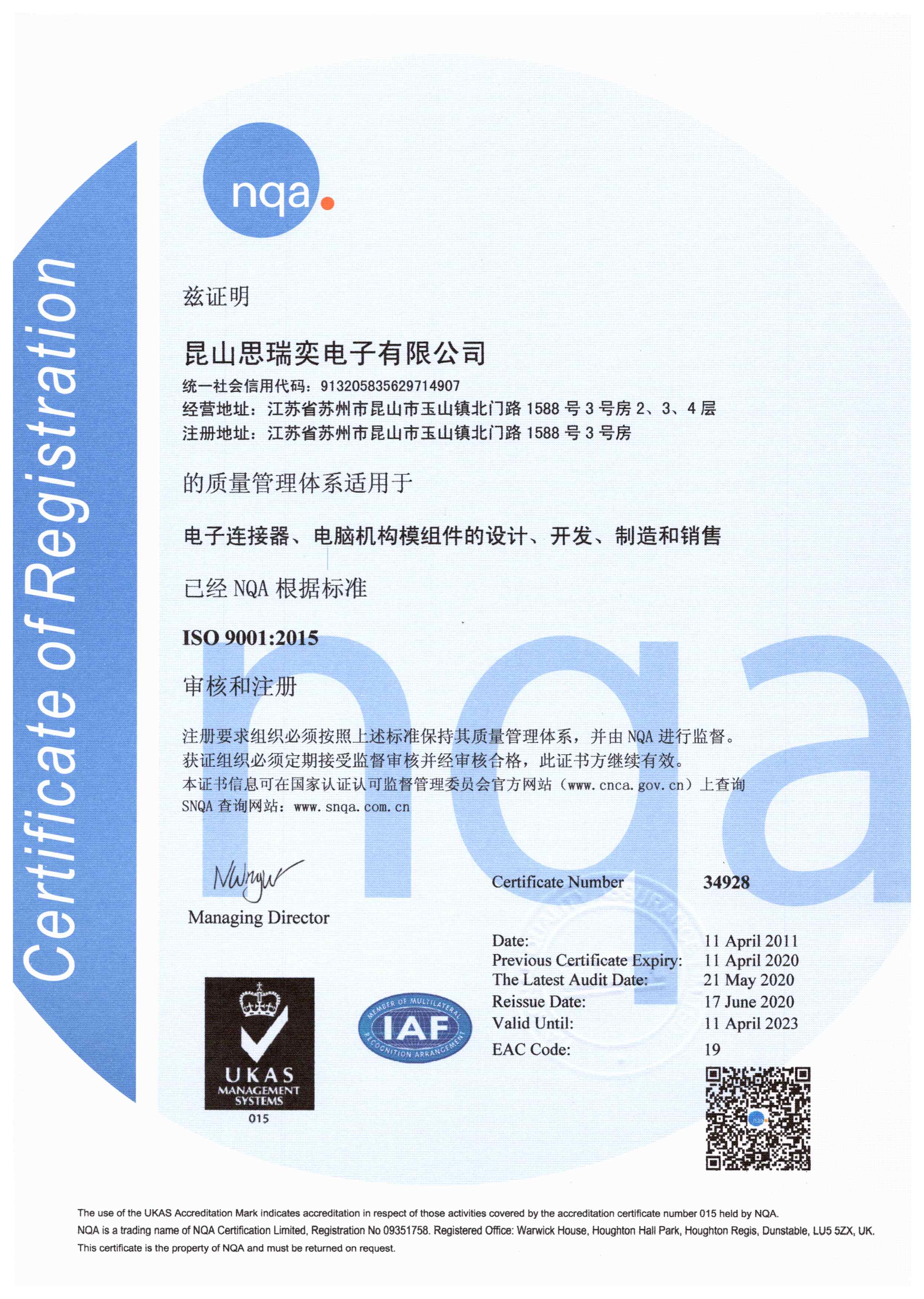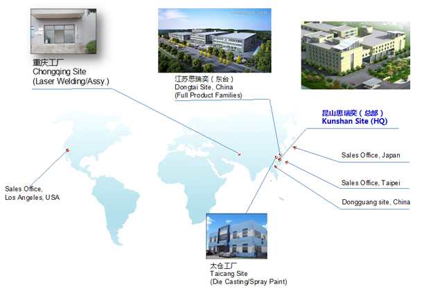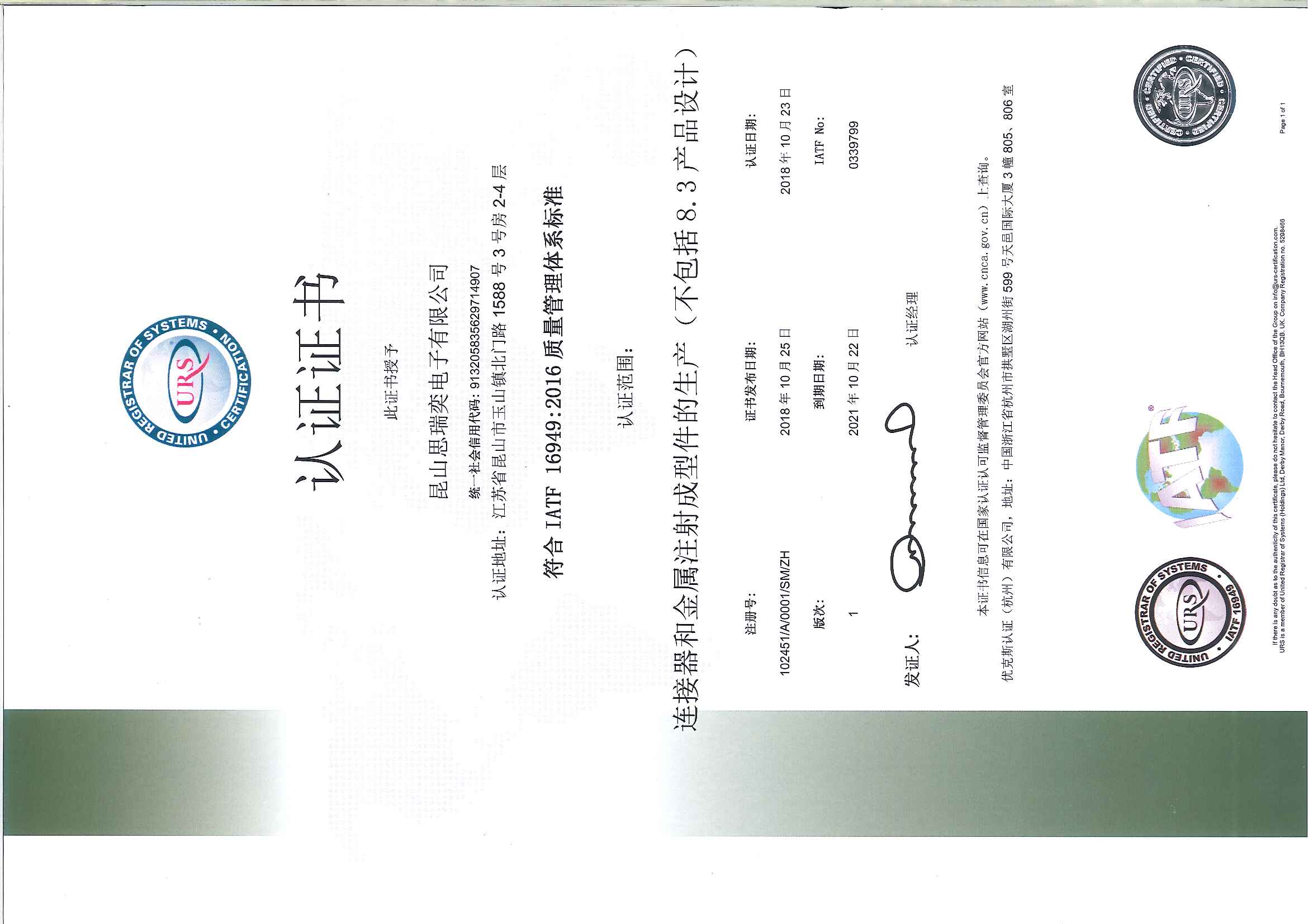 思瑞奕電子有限公司成立于2010年10月,注冊資金7500萬人民幣,總部位于江蘇省昆山市,在重慶、江蘇東臺、江蘇太倉設有分廠,公司于2011年通過ISO9001/ISO14001認證,2013年通過高新技術企業(yè)和TS16949(IATF)體系認定,2016年先后通過知識產(chǎn)權管理體系認證、安全生產(chǎn)標準化認證,2017年獲頒江蘇省民營科技企業(yè)、2018年先后獲得蘇州市人民政府認定企業(yè)技術中心、科技部認定中小型科技企業(yè)、江蘇省最具成長性高科技企業(yè)、2020年獲得江蘇省人民政府認定企業(yè)技術中心、2021年獲得蘇州市瞪羚計劃入庫企業(yè)、江蘇省省級工程技術研究中心、江蘇省專精特新中小企業(yè)等榮譽稱號......